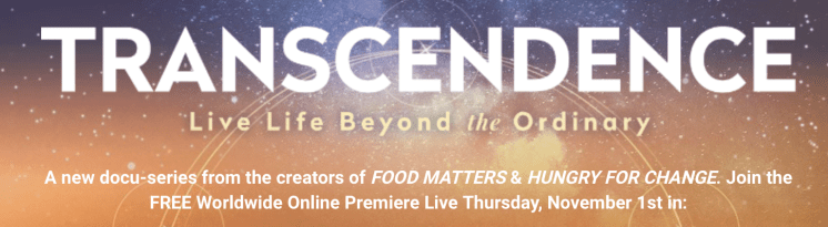 That’s why I’m writing to you today, to share a new 5-part docu-series that explores the current state of our physical, emotional, and mental health in a captivating way. It’s called Transcendence – Live Life Beyond the Ordinary, and it’s from the same internationally renowned filmmakers―James Colquhoun and Laurentine ten Bosch―who produced Food Matters and Hungry for Change.